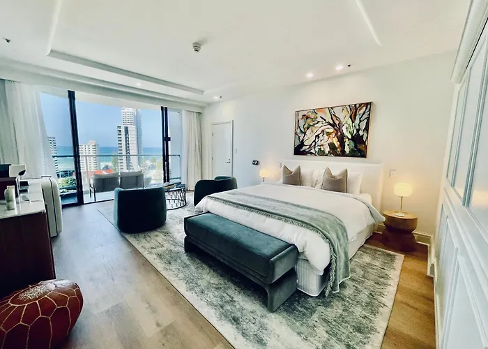 The 45 m² Boutique Ocean View Studio With King Bed & Spa Gold Coast is right in the centre of Gold Coast, a mere 7 minutes' walk from the riverside park "Cascade Gardens". Set a few moments from the Queensland Korean War Memorial, the apartment comes with an outdoor swimming pool, a hot tub.